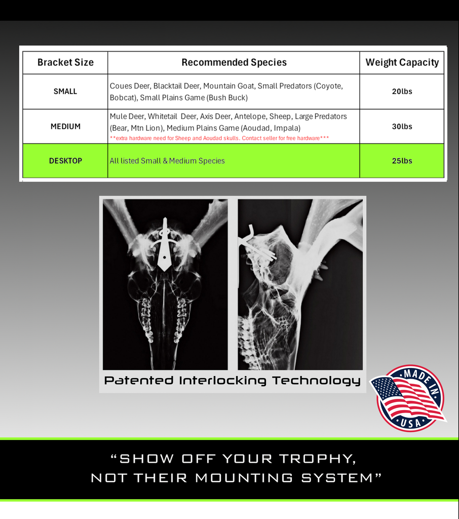 Crafted from durable materials, the mount ensures your trophy remains balanced and secure while allowing viewers to appreciate every detail. Its sleek, minimalist design complements any home, office, or cabin décor, keeping the focus on your mount rather than the hardware.